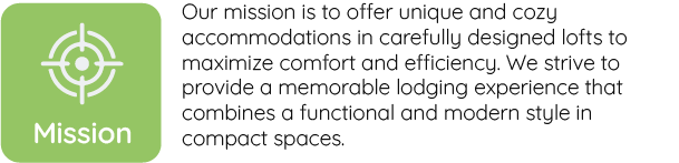 Our mission is to offer unique and cozy accommodations in carefully designed lofts to maximize comfort and efficiency. We strive to provide a memorable lodging experience that combines a functional and modern style in compact spaces.